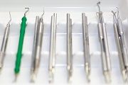 Die Zahnfleischtaschen werden mit speziellen Handinstrumenten gesäubert, um die Ablagerungen